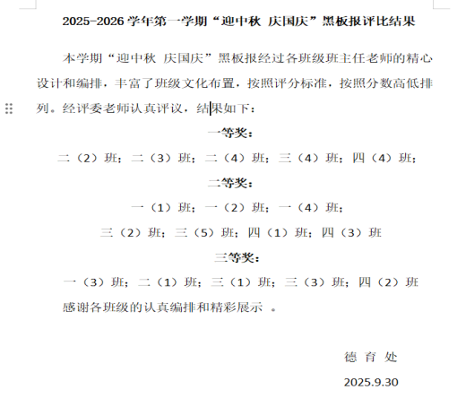 第二项:上秦淮小学“月满华诞 情系家园”黑板报评比颁奖仪式