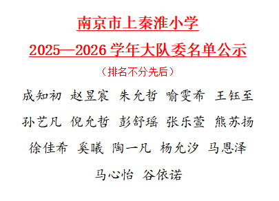关于南京市上秦淮小学2025—2026学年少先队大队委员人选的公示