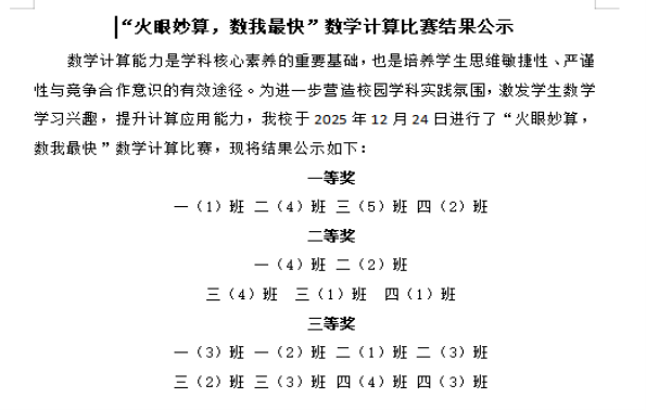 第三项:火眼妙算,数我最快”数学计算比赛颁授仪式